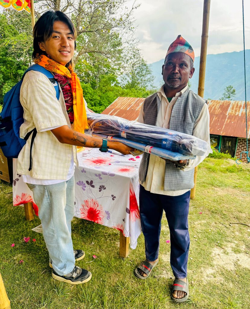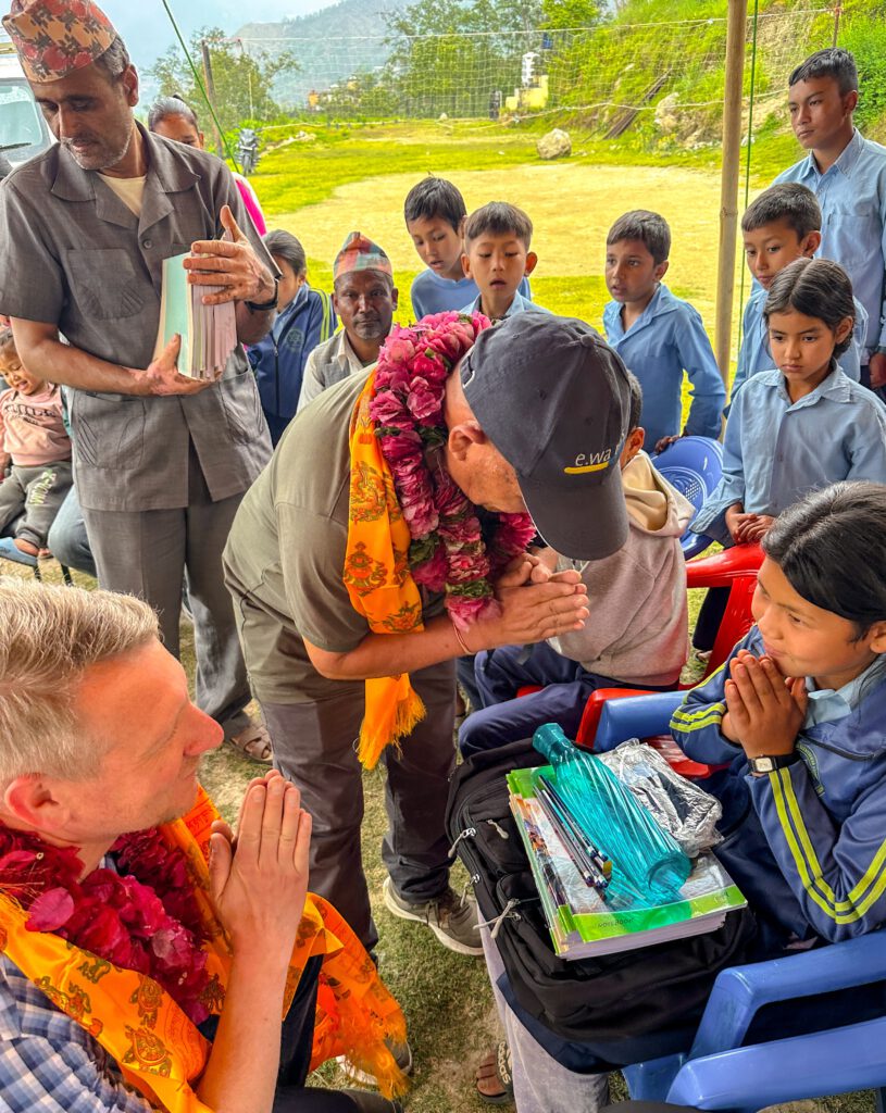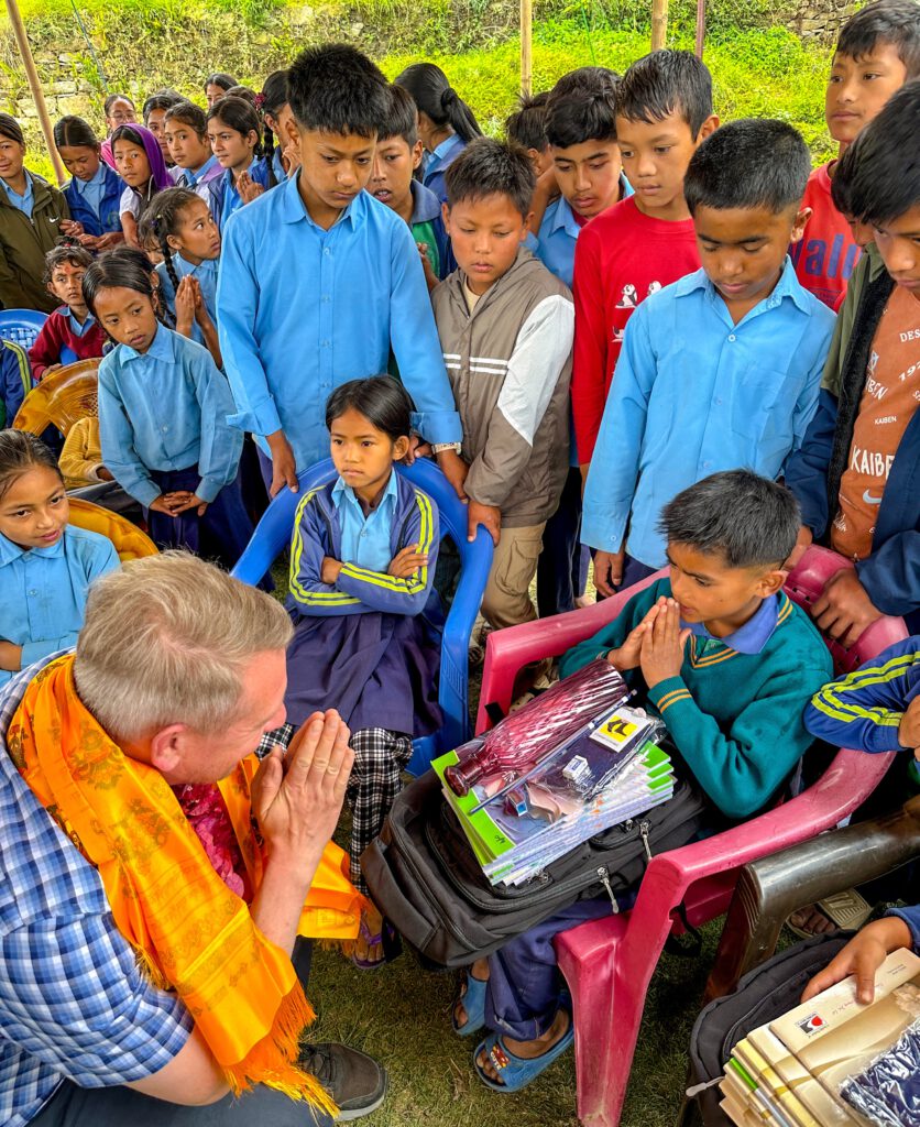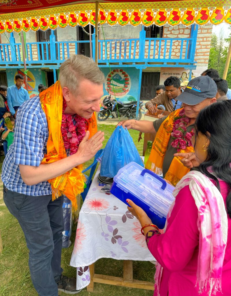 In Zusammenarbeit mit unseren lokalen Partnern Khada Bikram Darlami und seinem Sohn Bikrant Darlami wurden vorab gezielt niedrigschwellige Bedarfe an der von uns unterstützten Schule identifiziert. Ziel war es, zehn Waisenkinder, welche die Schule besuchen, mit einer möglichst vollständigen Grundausstattung (Schulkleidung,Schreibmaterial, Rucksäcke, etc.) zu versorgen. Darüber hinaus haben wir weitere Materialien zur Nutzung durch alle Schüler:innen der Schule sowie Medikamente, Verbandsmaterial und einfache Medizinprodukte für den direkt neben der Schule befindlichen Gesundheitsstützpunkt übergeben. Sämtliche Anschaffungen wurden bewusst lokal in Kathmandu getätigt, um kosteneffizient zu arbeiten (alle beschafften Gegenstände kosteten vor Ort nur einen Bruchteil der Summe, die bei Anschaffung in Deutschland angefallen wäre), um Transporte zu vermeiden sowie um die regionale Wirtschaft zu stärken.