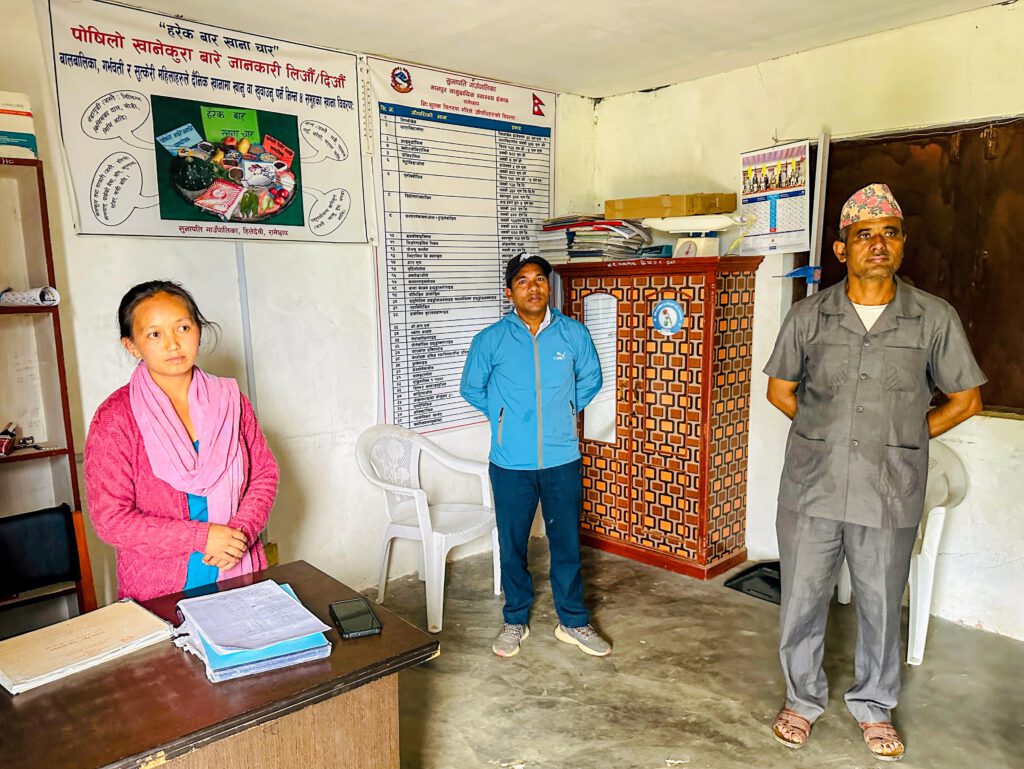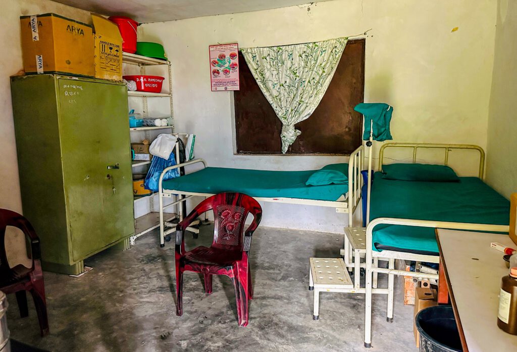 Direkt neben der Schule, jedoch außerhalb des Schulgeländes, befindet sich der Gesundheitsstützpunkt des Dorfes. Dieser wird von einer sehr engagierten Frau betreut, die nach ihrer Aussage jeden Tag etwa 40 Patient:innen sieht, jedoch selbst keine ausgebildete Medizinerin ist. Der Stützpunkt besteht aus zwei Räumen, einem Büro- und Diagnosezimmer sowie einem Raum mit drei Liegen für Patient:innen. Die Ausstattung ist alt und unzureichend und Medikamente sowie einfachste diagnostische Ausstattung sind nicht in hinreichender Anzahl vorhanden. Dies stellt vor allem in Hinblick auf die herannahende Monsun-Regenzeit, die von Infektionskrankheiten, insbesondere Erkrankungen des Magen-Darm-Traktes geprägt ist, ein erhebliches Problem dar.